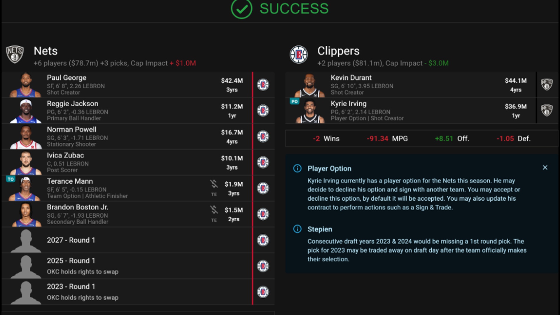 You never know, this trade could have the Clippers and the Nets competing for the 2023 NBA Championship. Only TIME will tell.